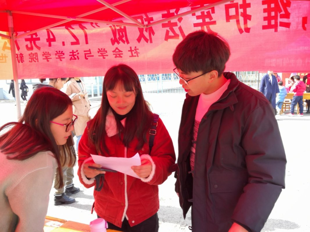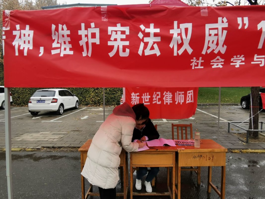为增强同学们的宪法意识,弘扬宪法精神,11月30日至12月1日,公司新世纪律师团于校医院门口举办宪法日宣传活动。