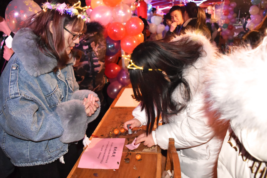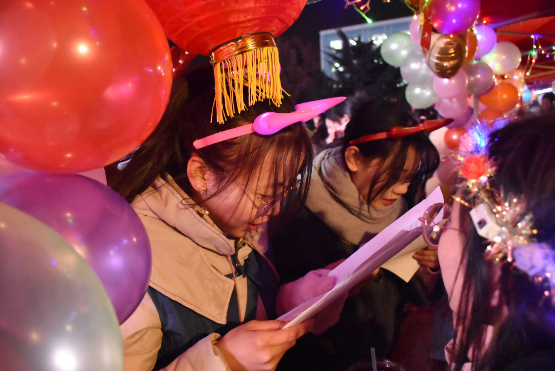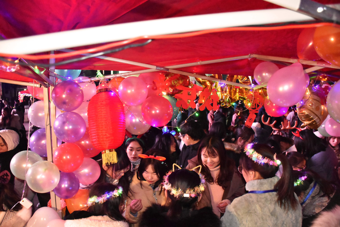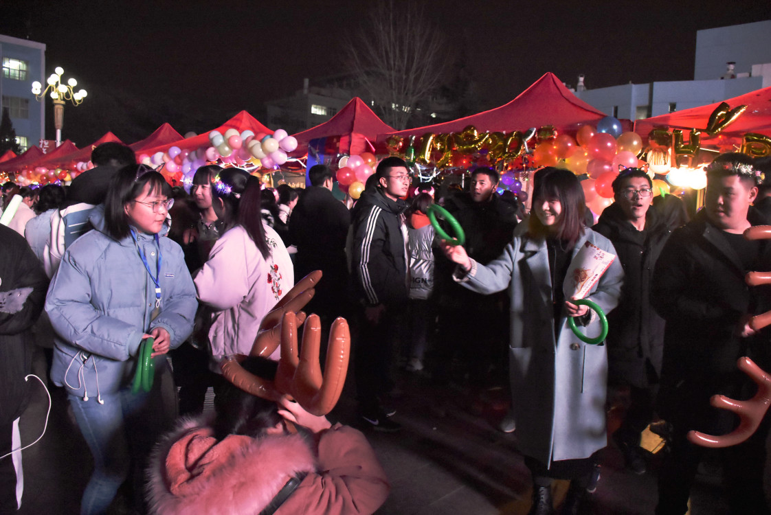 你瞧,游园会上人头攒动,热闹非凡。同学们的脸上都洋溢着喜悦的笑容,冬夜的寒风都变得甜甜辣辣。公司于现场开展了“欢乐掷圈,祥鼠送福”、“能说会道--绕口令”、““鼠”你最强--光盘拔河”、“思维敏捷--手忙脚乱”等丰富多彩的迎新活动,吸引了全校众多学子围观参与,同学们兴致勃勃,跃跃欲试,想要加入游戏大军一展身手。笑着,闹着,“一波未平一波又起”的欢呼雀跃,源源不断的似火热情把整个冬夜点燃,变得更加流光溢彩。