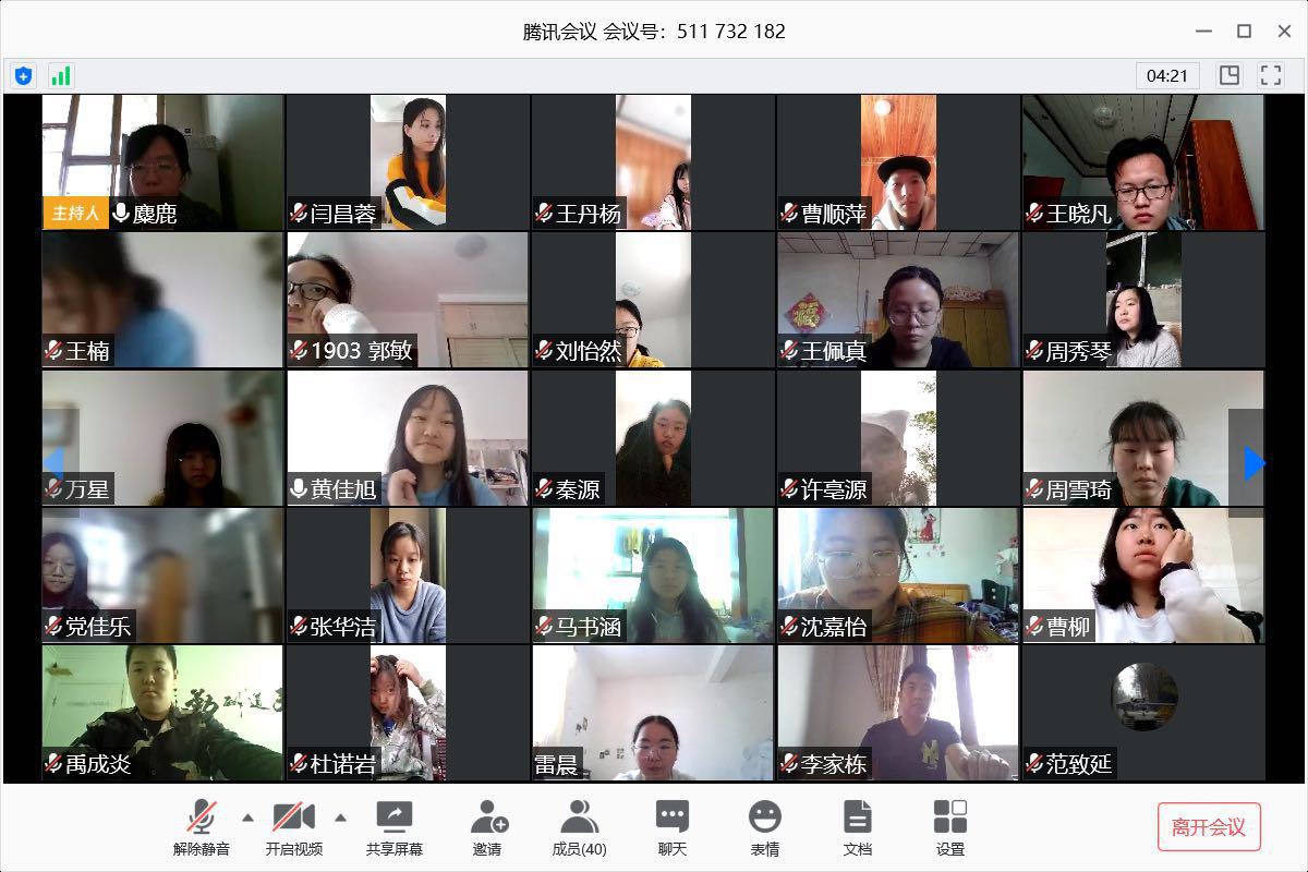 为进一步加强同学们安全防范意识,提升大家“自我服务、自我学习、自我管理”的能力,并对大家在疫情期间学习与生活方面可能会遇到的各项问题进行指导,4月16日,公司1903班通过腾讯会议APP召开了线上主题班会。此次班会由辅导员老师于宝钗主持,1903班全体同学参加。
