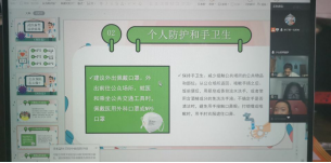 今天是网络授课的第三天,为了符合当下疫情,下午我给孩子们上了关于新冠病毒的卫生常识课。在课堂上,我带领同学们了解了新冠病毒的预防知识,从公共、家里等方面来讨论预防新冠病毒疾病的措施。同学们积极参与,有的通过语音的形式和我进行交流,还有的通过腾讯会议的聊天框与我互动。可以看出孩子们对新冠病毒的可怖性还是有一定的了解的,同时他们对于防范新冠疾病的措施也是有一定的学习基础。我相信通过这节课的学习,同学们一定又进一步地学到了更多预防新冠疾病的知识。