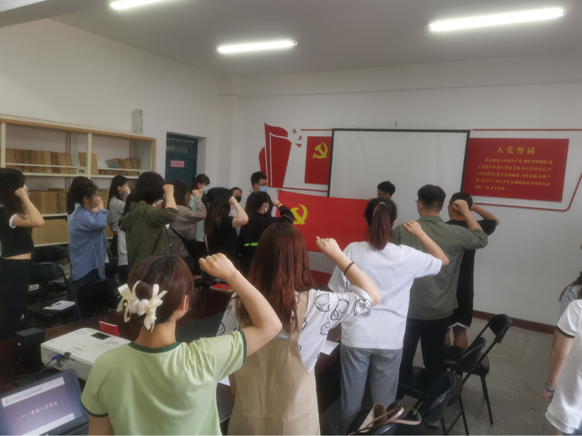 大会伊始,全体党员面向党旗庄严宣誓,通过重温入党誓词,领悟誓词真谛,激励每一位党员不断进取、奋斗终身。然后观看毕业生党员纪念视频,展现在校期间各党支部“三会一课”与特色活动的开展情况。接下来由毕业研究生党员代表王帅琦宣读毕业生党员倡议,他围绕心怀母校,感恩师友、锤炼党性,勇担使命、牢记嘱托,不负韶华三个方面,倡议毕业生党员同志以实际行动为党旗增光、为师大添彩。毕业本科生党员代表梁欣洋做表态发言,毕业生将带着师大赋予的宝贵精神烙印,初心不改,继往开来。在校生党员代表左旭阳发言,她从对毕业生党员在校期间贡献的感激与不舍方面进行发言,同时为毕业生党员同志献上美好祝福。