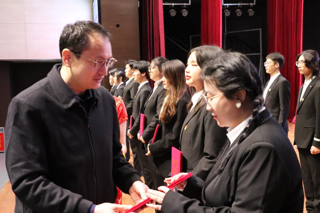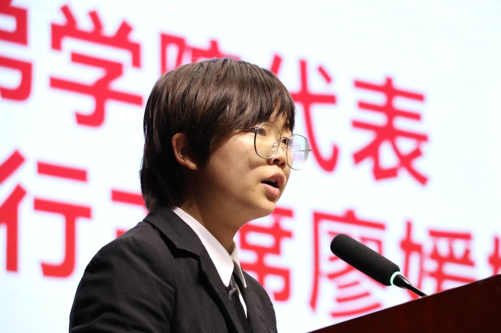 大会第三项,付含培老师发表致辞。付老师首先对莅临本次活动的各位老师及同学表达了热烈欢迎。随后,付老师对团委员工会上一学年中团委员工会在保障教学秩序,助力疫情防控;拓宽学习渠道,营造优良学风;关注组织建设,促成协同发展;开展丰富活动,推动综合发展;立足服务员工,保障员工权益五个方面圆满完成的工作给予了高度评价。最后,付老师勉励新一届团委员工会成员再接再厉,共创辉煌。