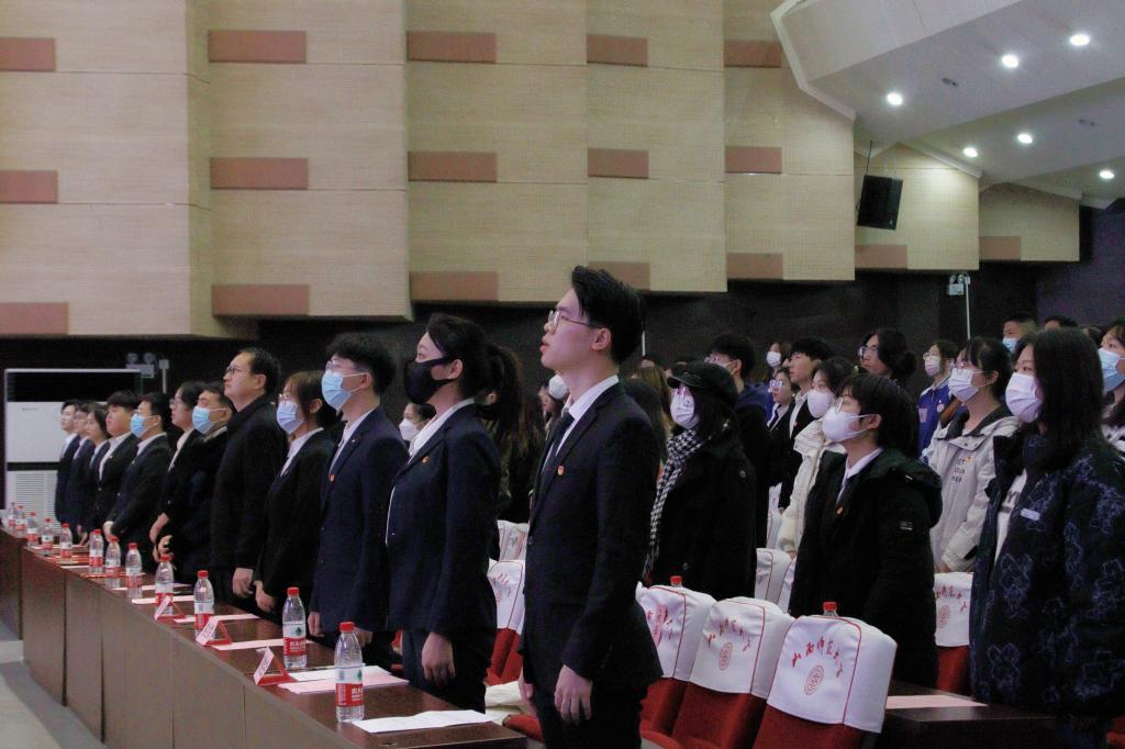 大会第二项,全体成员齐唱中华人民共和国国歌。
