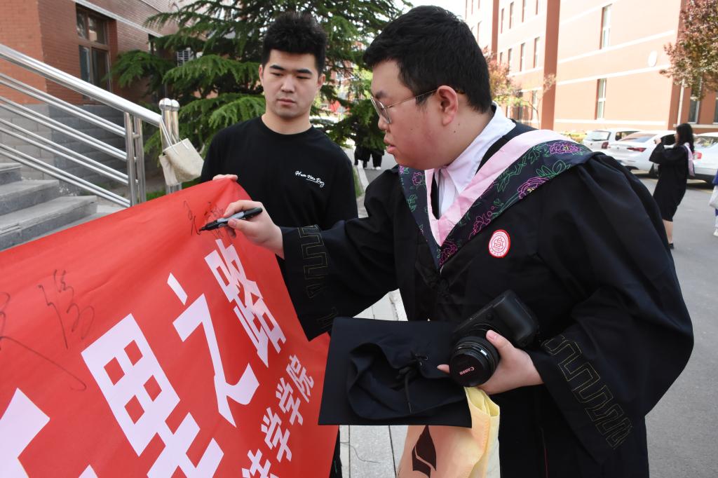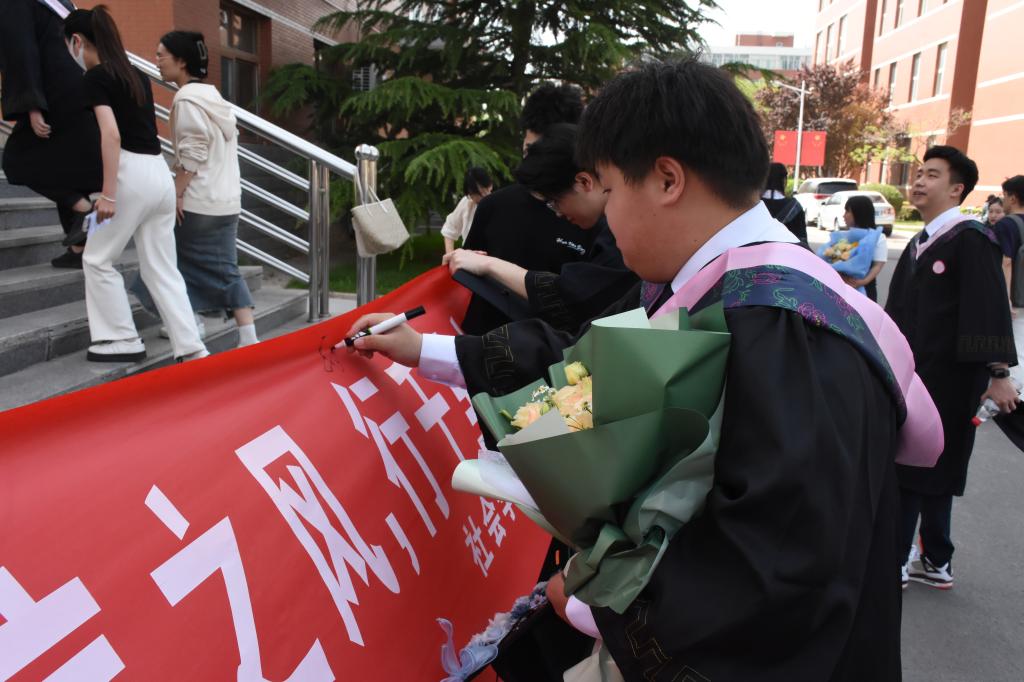 5月16日,bg大游集团官方网站团委于南区办公楼前举办“树诚信之风,行千里之路”毕业生诚信教育活动。2023届毕业生在“树诚信之风,行千里之路”的横幅上签名并合影留念,在毕业之际表达自己以诚信立身的信念追求。相信通过本次活动,定能提高bg大游集团官方网站学子的道德认知,唤起他们的自我教育和自我完善意识,牢记国家和社会的关爱,以诚立身,守信前行。