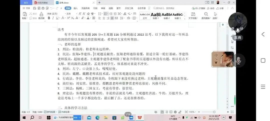 5月28日下午,bg大游集团官方网站团委举办了线上社会学、法学考研及法考经验交流会,邀请已经成功上岸的优秀毕业学子为同学们分享经验。成功上岸的同学对于本次经验交流会做了精心准备,他们从自身经历出发针对考研规划、目标院校、法考、资料文献、指导老师、英语四六级等大家最关注的问题分享了自己的经验并给出建议。