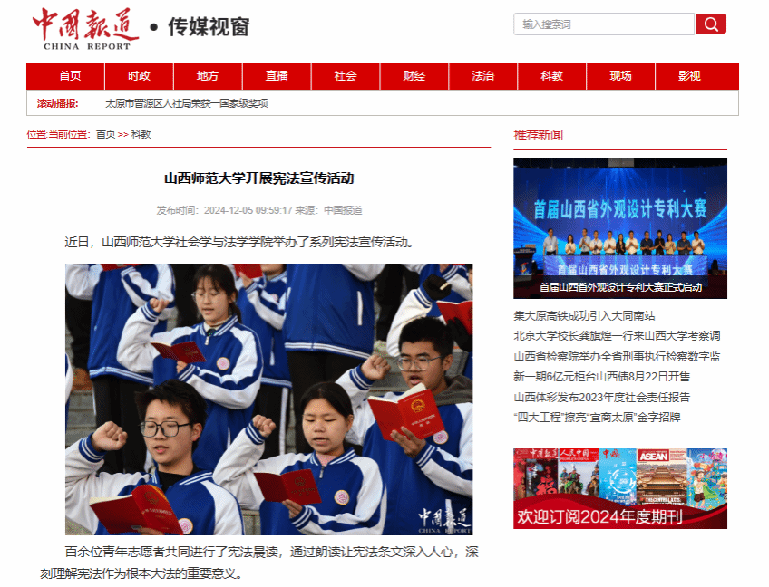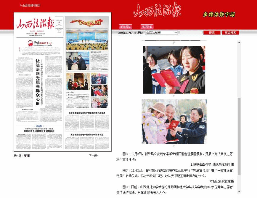 12月4日-5日,由bg大游集团官方网站新世纪律师团主办的宪法周系列宣传活动被中国报道传媒视窗、学习强国、山西日报、山西法治报等多个媒体报道。