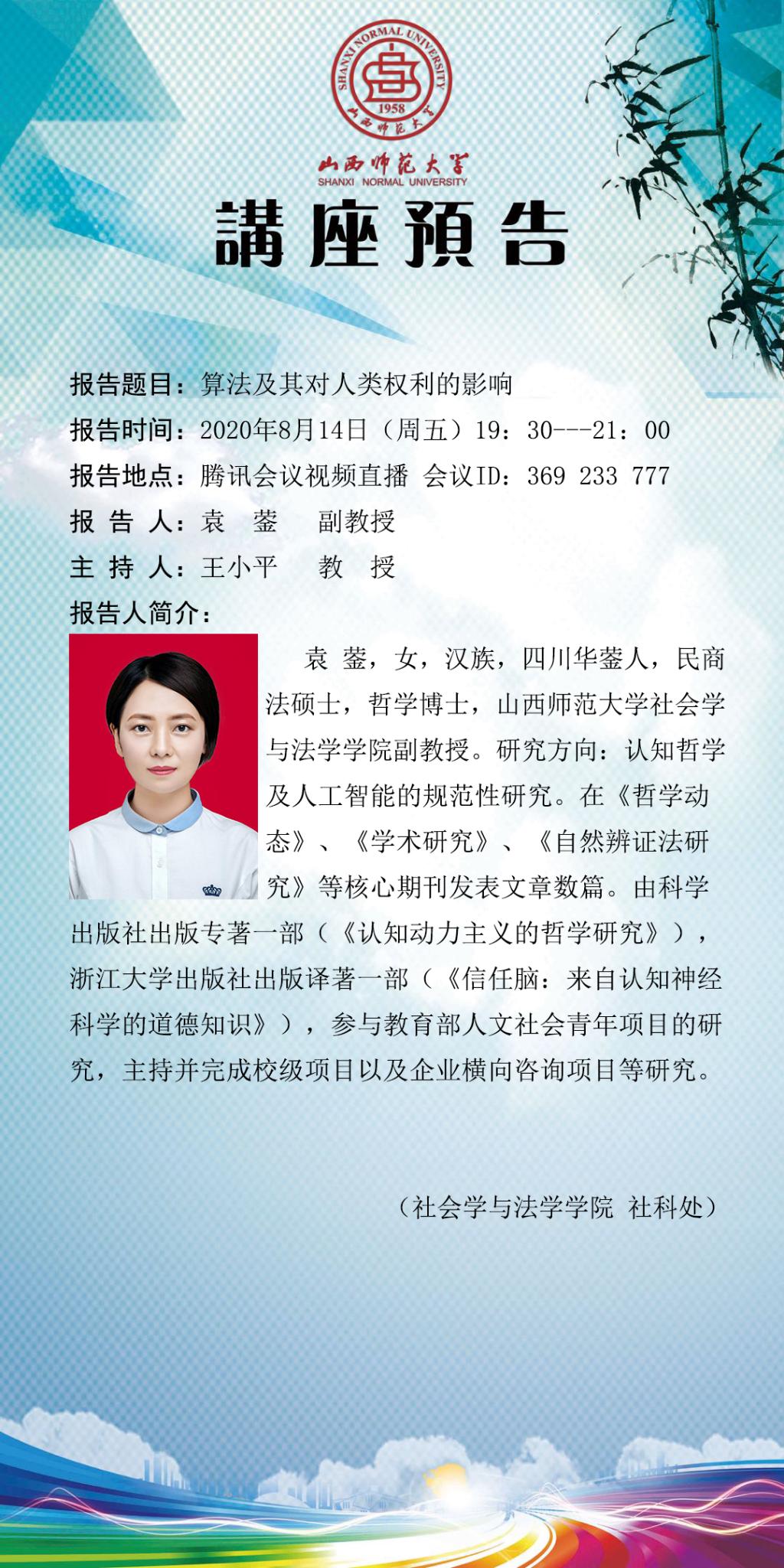 bg大游集团官方网站袁蓥副教授学术报告预告