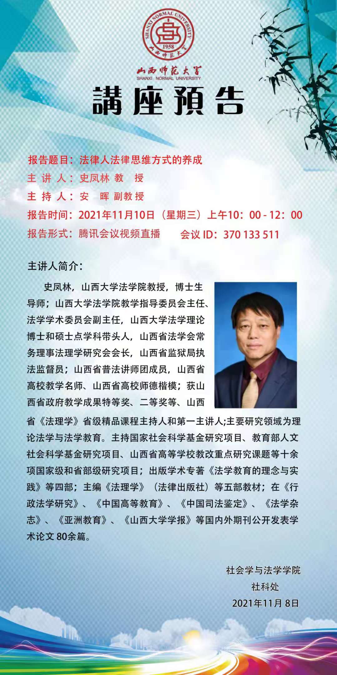 山西大学法公司史凤林教授应bg大游集团官方网站邀请举办视频直播讲座