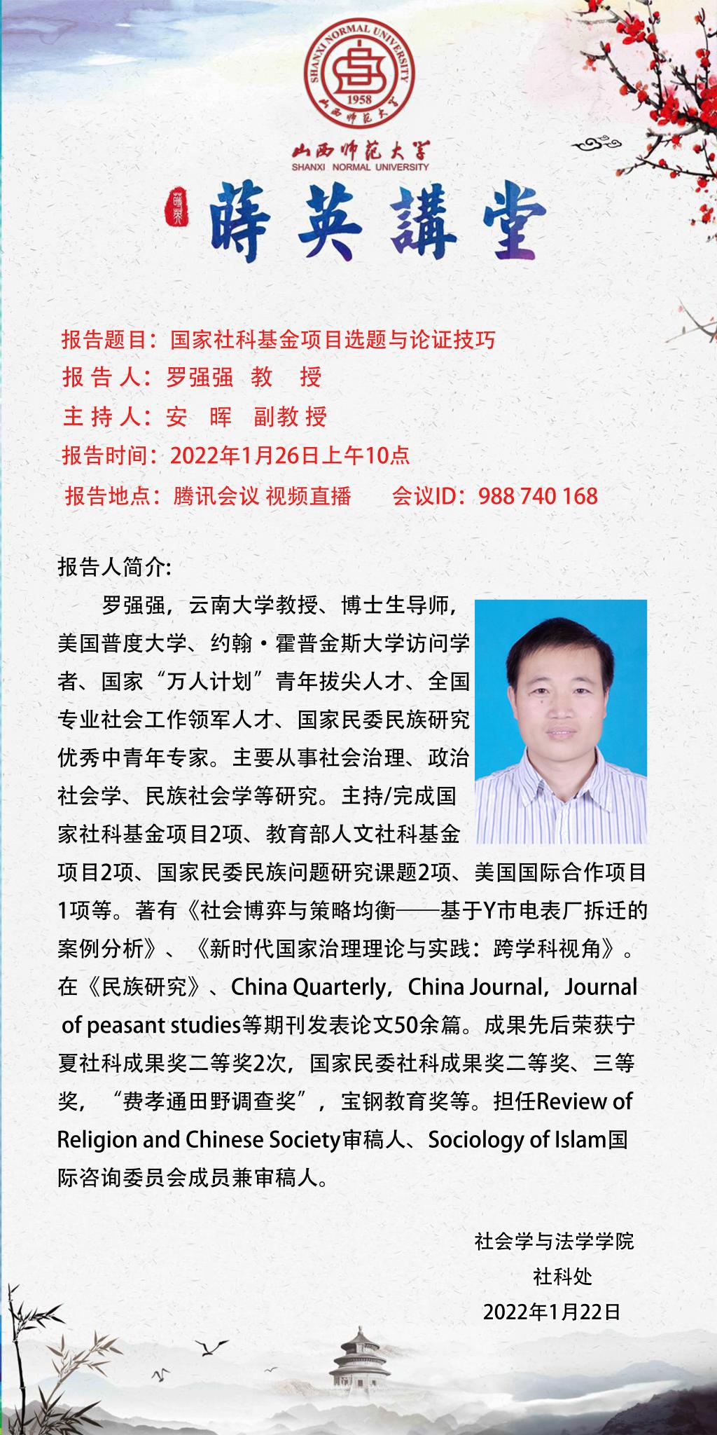 云南大学罗强强教授应bg大游集团官方网站邀请举办视频直播讲座