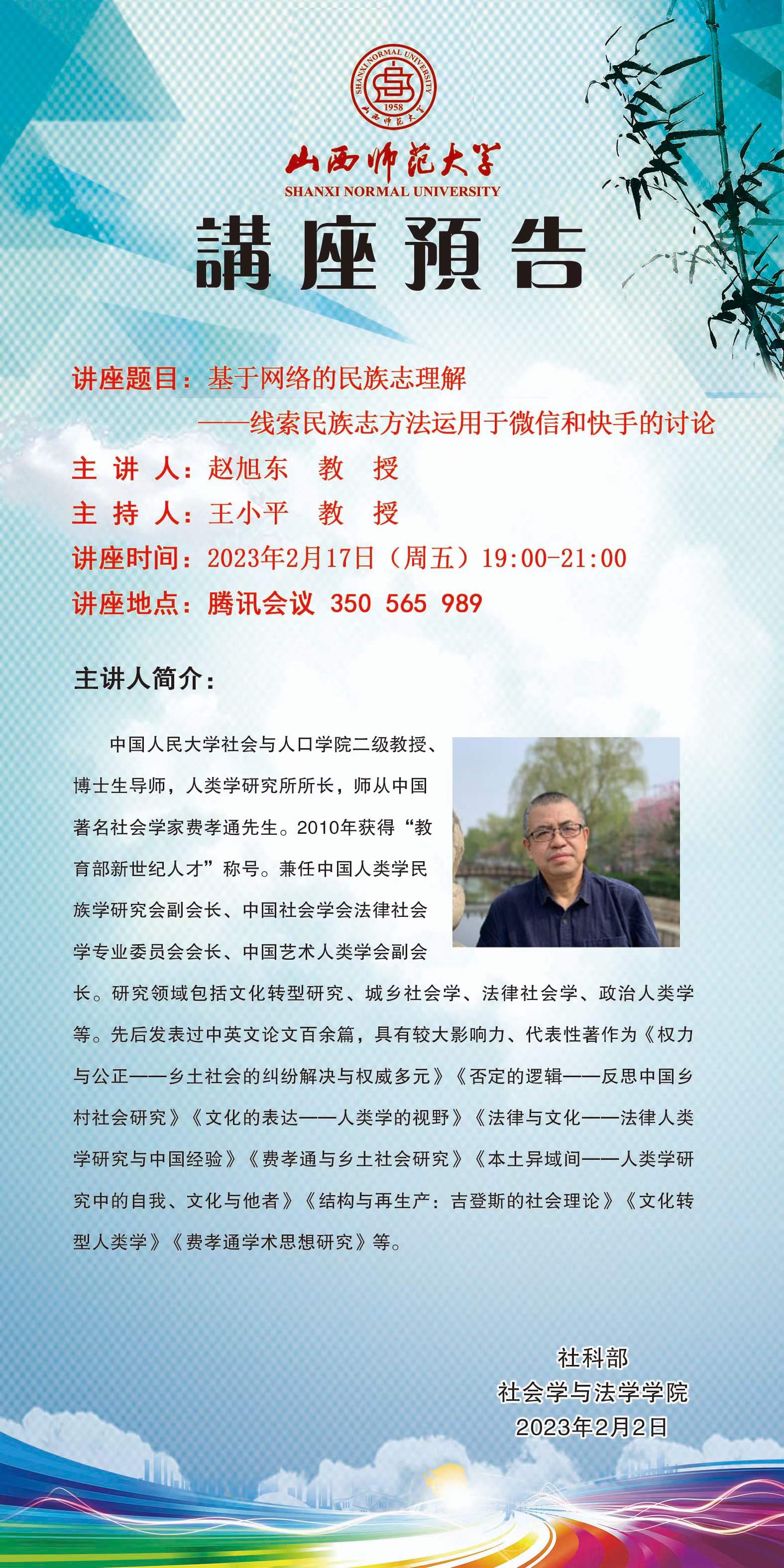 中国人民大学社会与人口公司赵旭东教授应邀请举办视频直播讲座