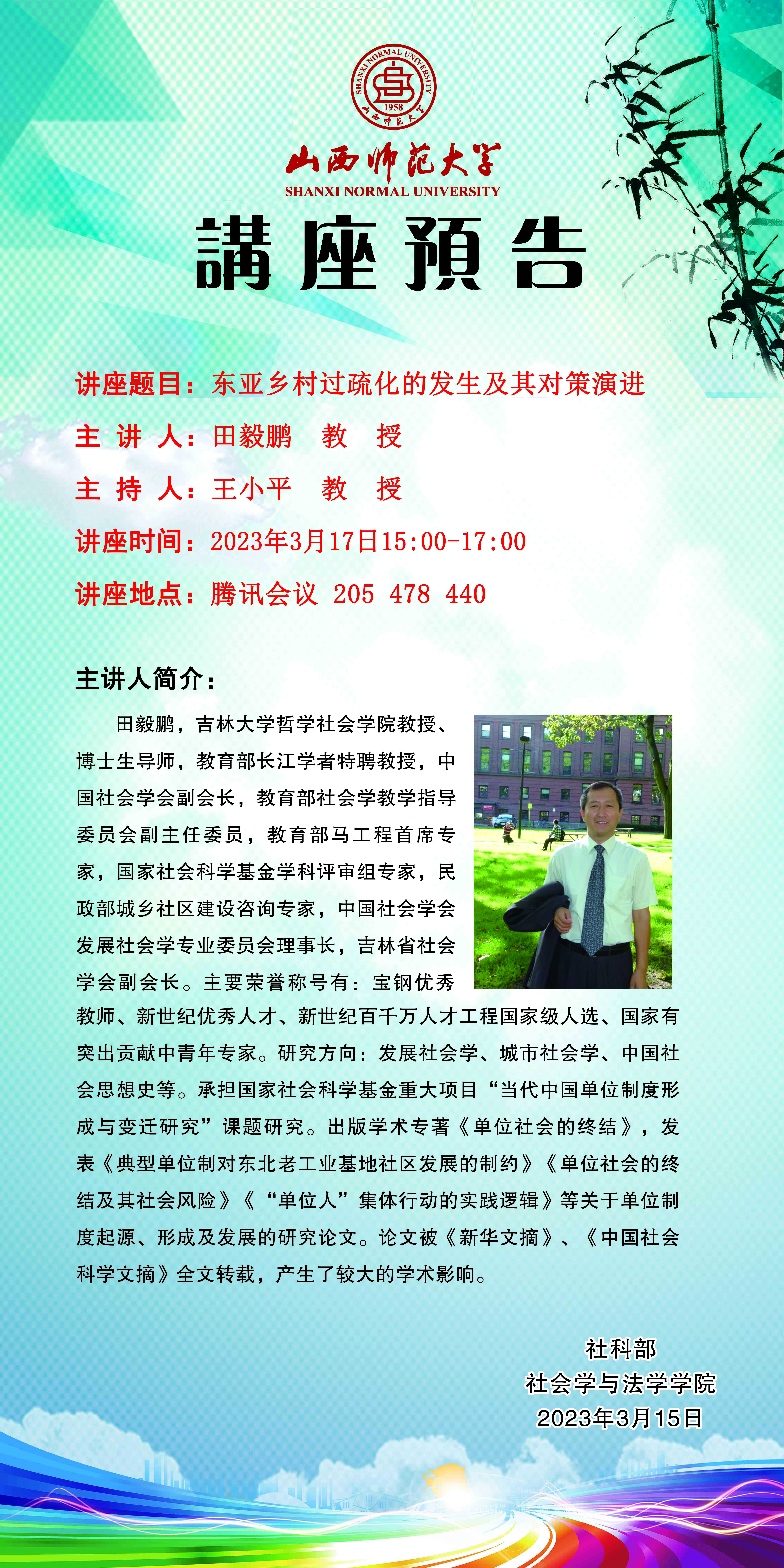 吉林大学哲学社会公司公司田毅鹏教授应邀请举办视频直播讲座