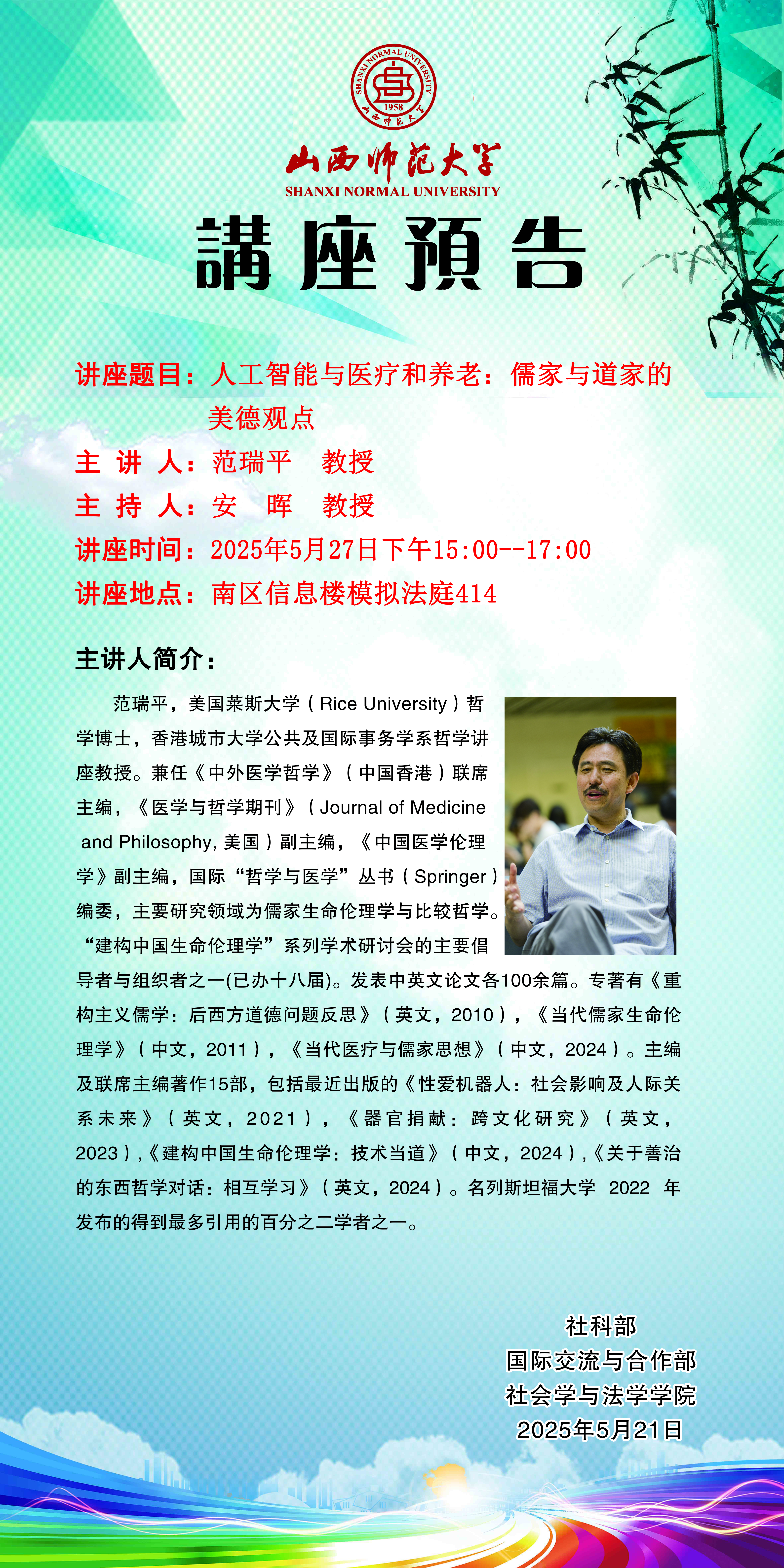 bg大游集团官方网站哲学讲座教授范瑞平应公司邀请做学术报告